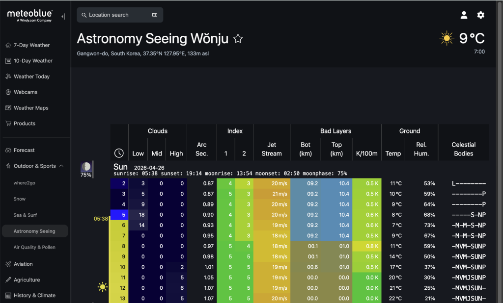So for deep-sky observing, I now check cloud layers first and only then move on to the rest.